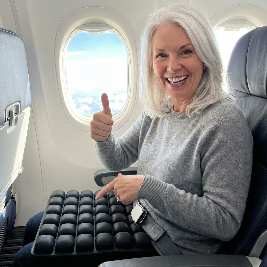 You've tried everything - memory foam cushions that compressed into pancakes after an hour. Donut cushions that created new pain points. Even paid $400+ for premium economy, but the seat was still torture after 4 hours. Nothing works.